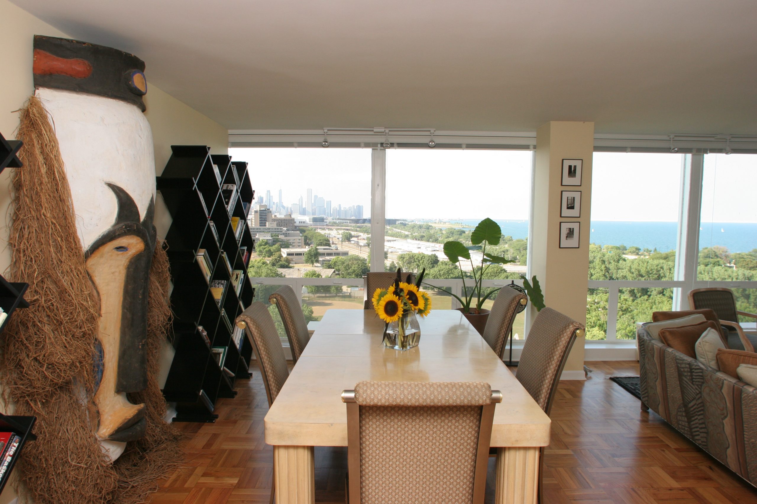 Complete interior gut, redesign and renovation of the existing 2,000 square foot Penthouse Condominium. The project included custom space planning, interior design and the selection of new millwork, furniture, fixtures and equipment. The plan was manipulated as required to take full advantage of the floor to ceiling window wall facing lake Michigan and the Chicago downtown skyline in all areas along the entire east side of the unit.